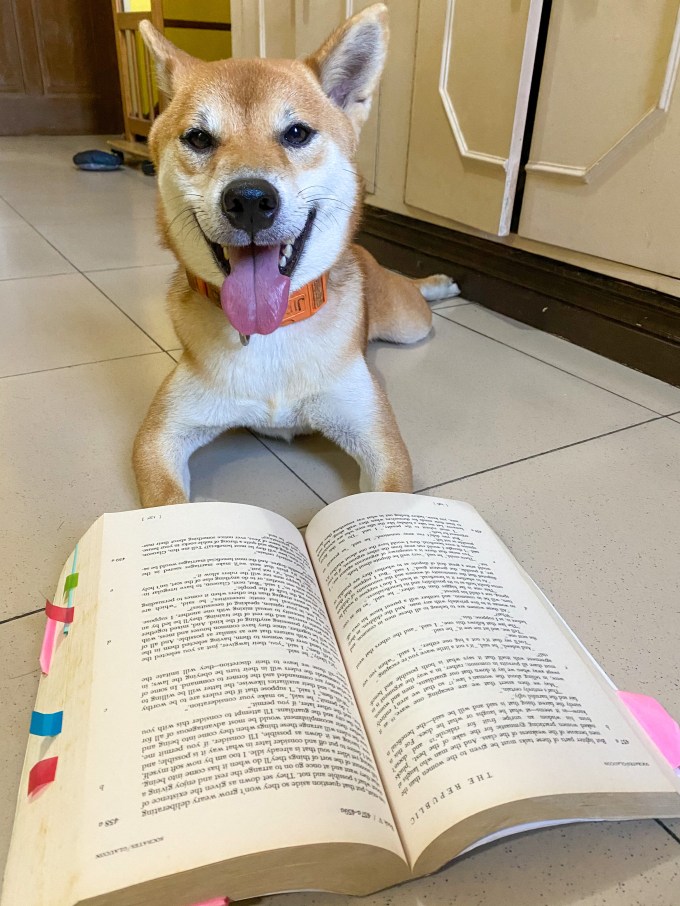 Reading Plato with an intensity that only dogs have.